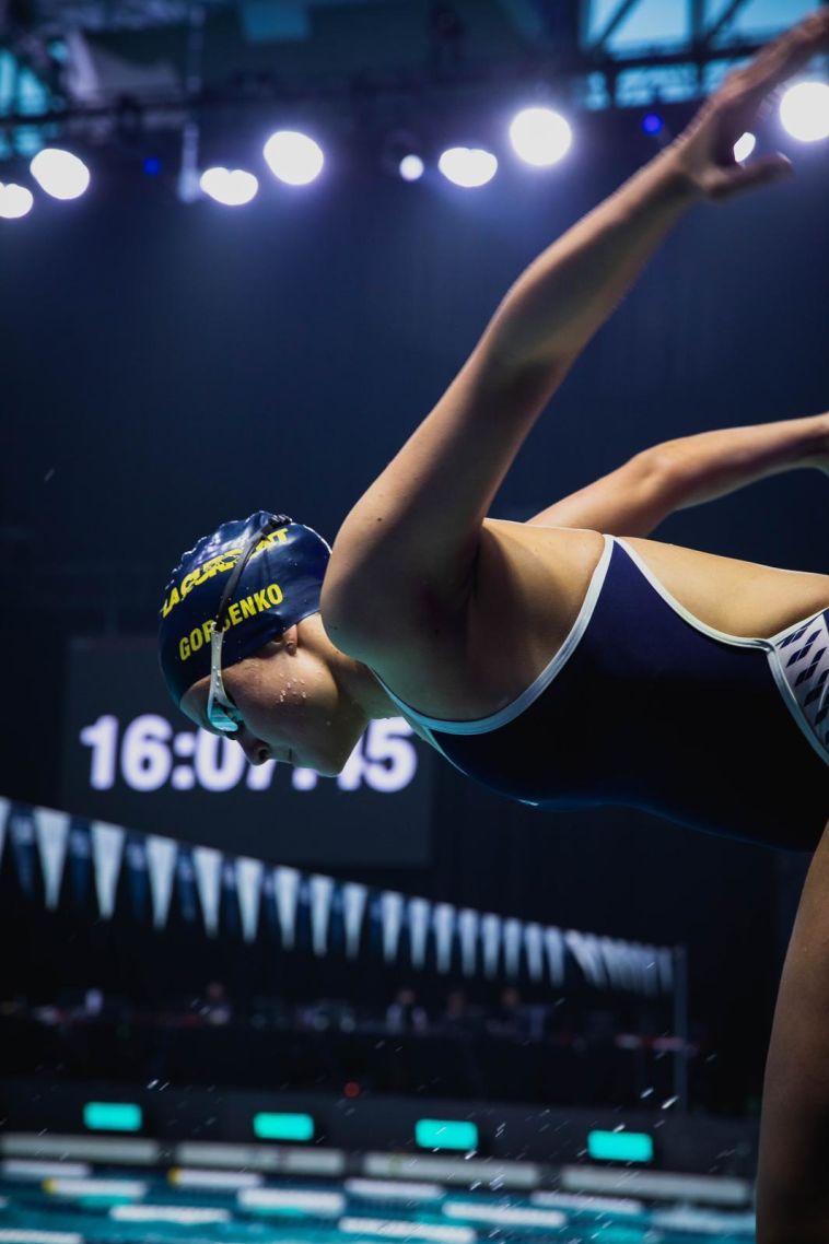גורבנקו - הטריק של גורבנקו שמשגע את עולם השחייה : She competes in the 100 m backstroke, 100 m breaststroke, 100 m freestyle, 200 m backstroke, 200 m breaststroke, 200 m medley, 50 m backstroke, 4x100 m freestyle, 4x100 m medley.